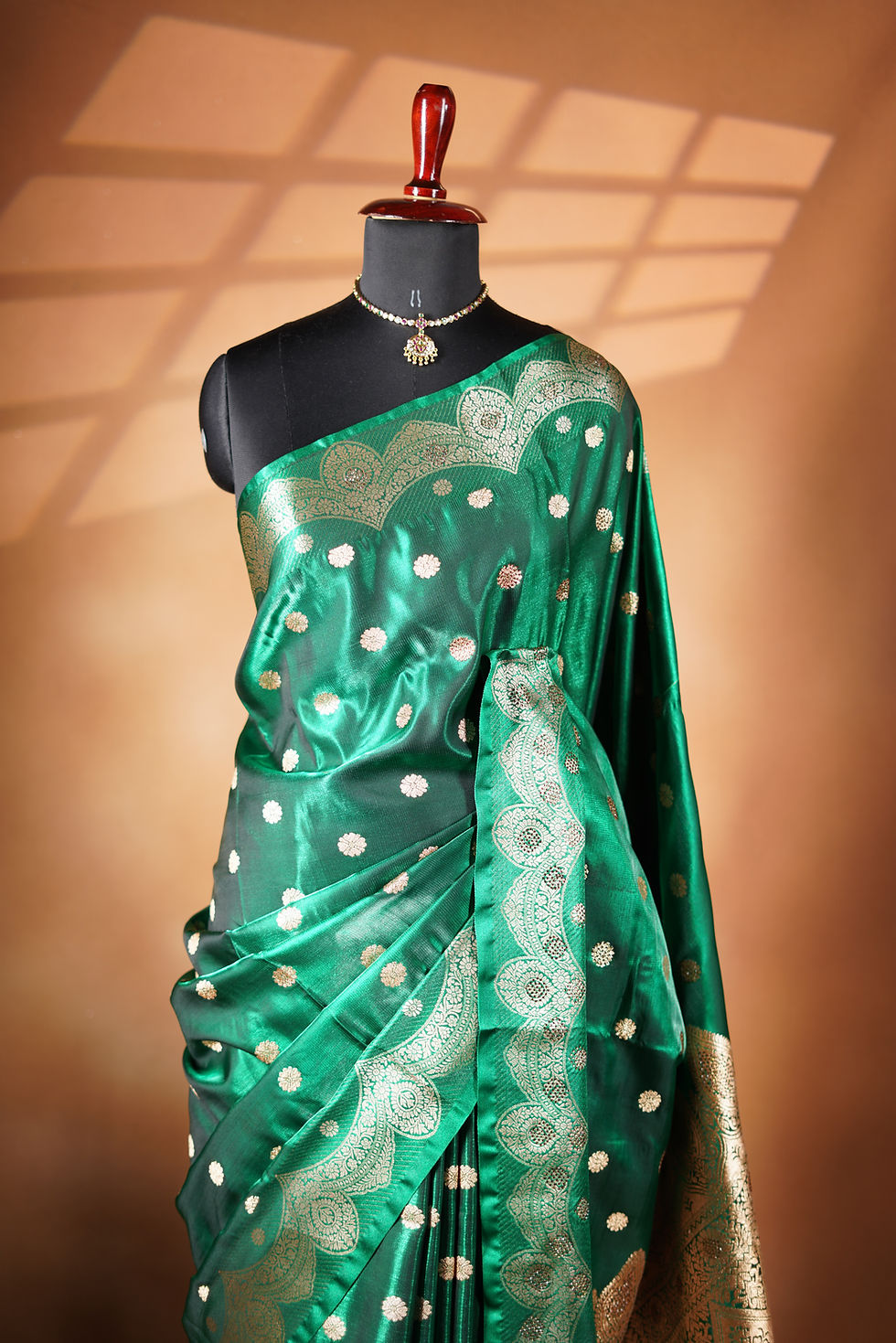 Champagne gold jacquard silk saree whre perimum tissues silk blend situation metallic sliver zari and paired with contract blouse