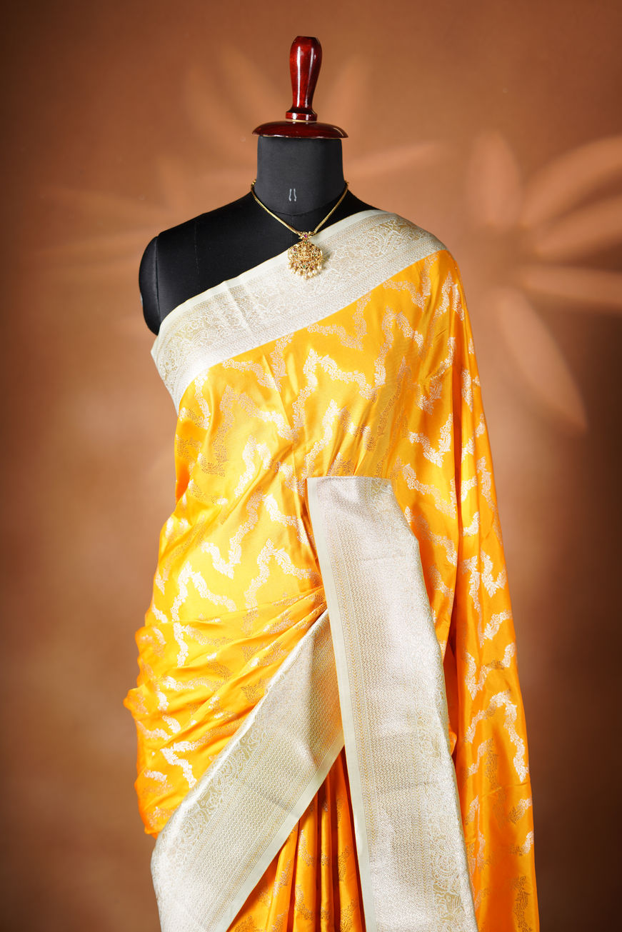 The Necklace Saree features rich woven patterns paired with a statement-inspired design, perfect for timeless elegance.